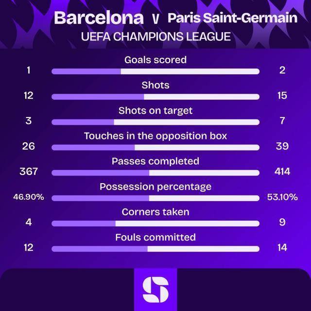 巴塞罗那1比2巴黎圣日耳曼体育集锦