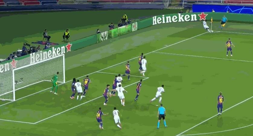 第26分钟,奥尔莫禁区外远射过程折射后偏出底线。