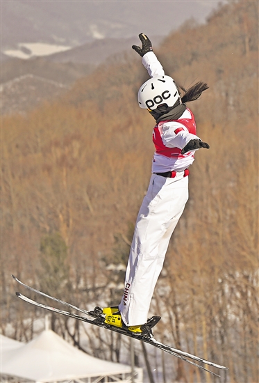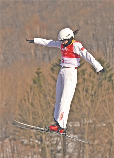 冯俊熙/王雪(上图)在摆脱式滑雪女子空中手段双东说念主同步决赛比赛中。新华社记者 夏一方 摄