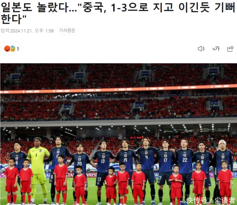 点击输入图片形容(最多30字)而此次在主场与日本队的比赛,从实力上来说,全球皆知谈必输无疑。不外,由于此前国足来了一波两连胜,再加上主场作战,让全球又有所期待。在这场万众瞩商酌比赛中,国足的进展如实可以,不外如故输了比赛,1:3的比分也让国足的净胜球形成负两位数,也让国足在积分榜上名次终末又名。但这场比赛后,国内球迷和媒体对国足的进展提议了表扬,况且有了更多的期待,但韩国媒体却不这么看。