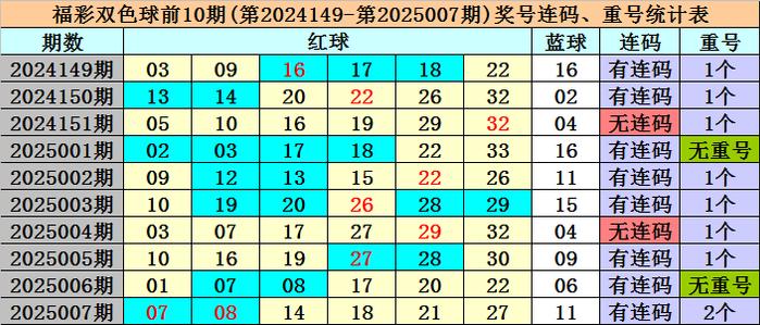 上期开奖:福彩双色球第2025007期开出奖号:07 08 14 18 21 27 + 11,其中红球和值为95体育集锦,首尾间距为20,有连码,出现2个访佛号码。